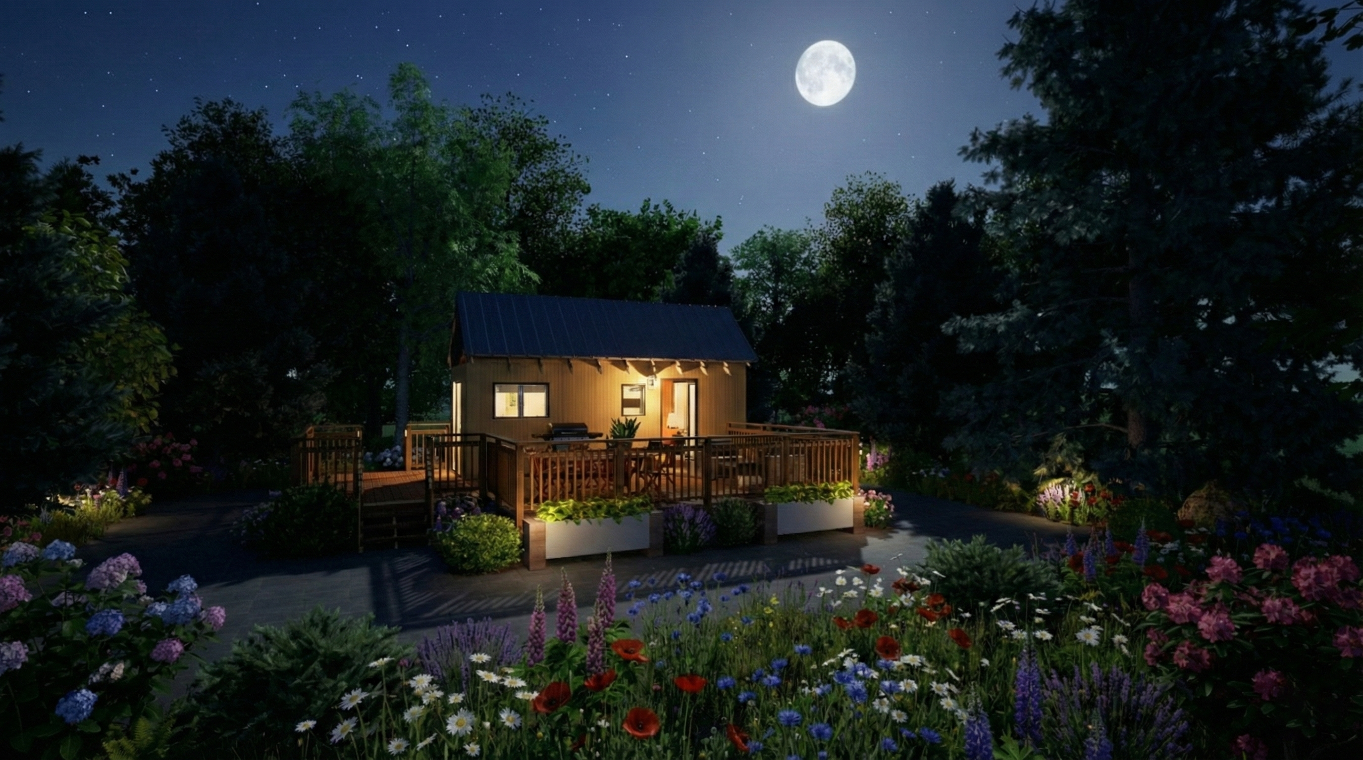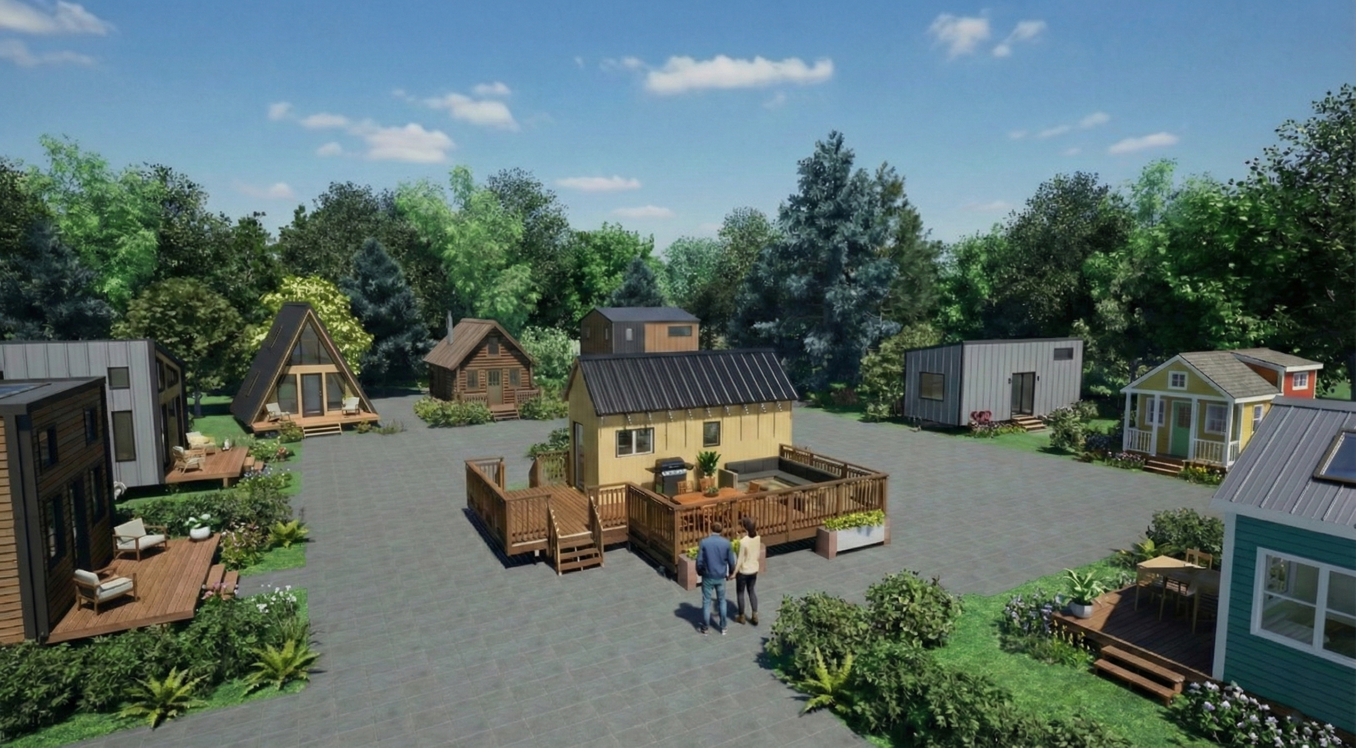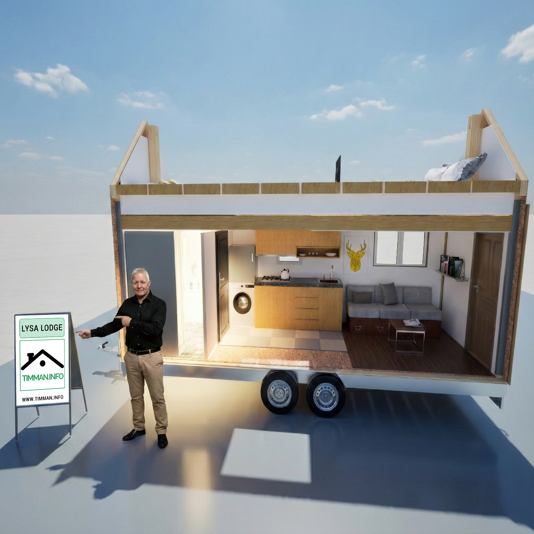 Buiten wacht een royaal houten terras met loungeset – dé plek om te ontspannen, te barbecueën en te genieten van het buitenleven. Dankzij het ontwerp en de uitstraling past Lysa Lodge moeiteloos in een tinyhouse-woongemeenschap. Het huis staat op een trailer, waardoor het eenvoudig verplaatsbaar is. Gebouwd van duurzame materialen zoals hout en een dak van golfplaten, ademt dit tinyhouse duurzaamheid en vrijheid.